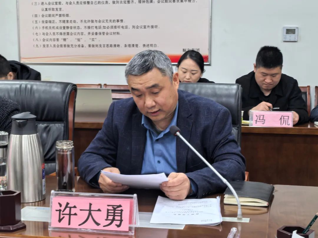 會上,集團黨委副書記許大勇傳達《蘭山區(qū)2025年政府工作報告(節(jié)選)》和《蘭山街道黨工委關于開展深入學習貫徹中央八項規(guī)定精神學習教育的通知》。
